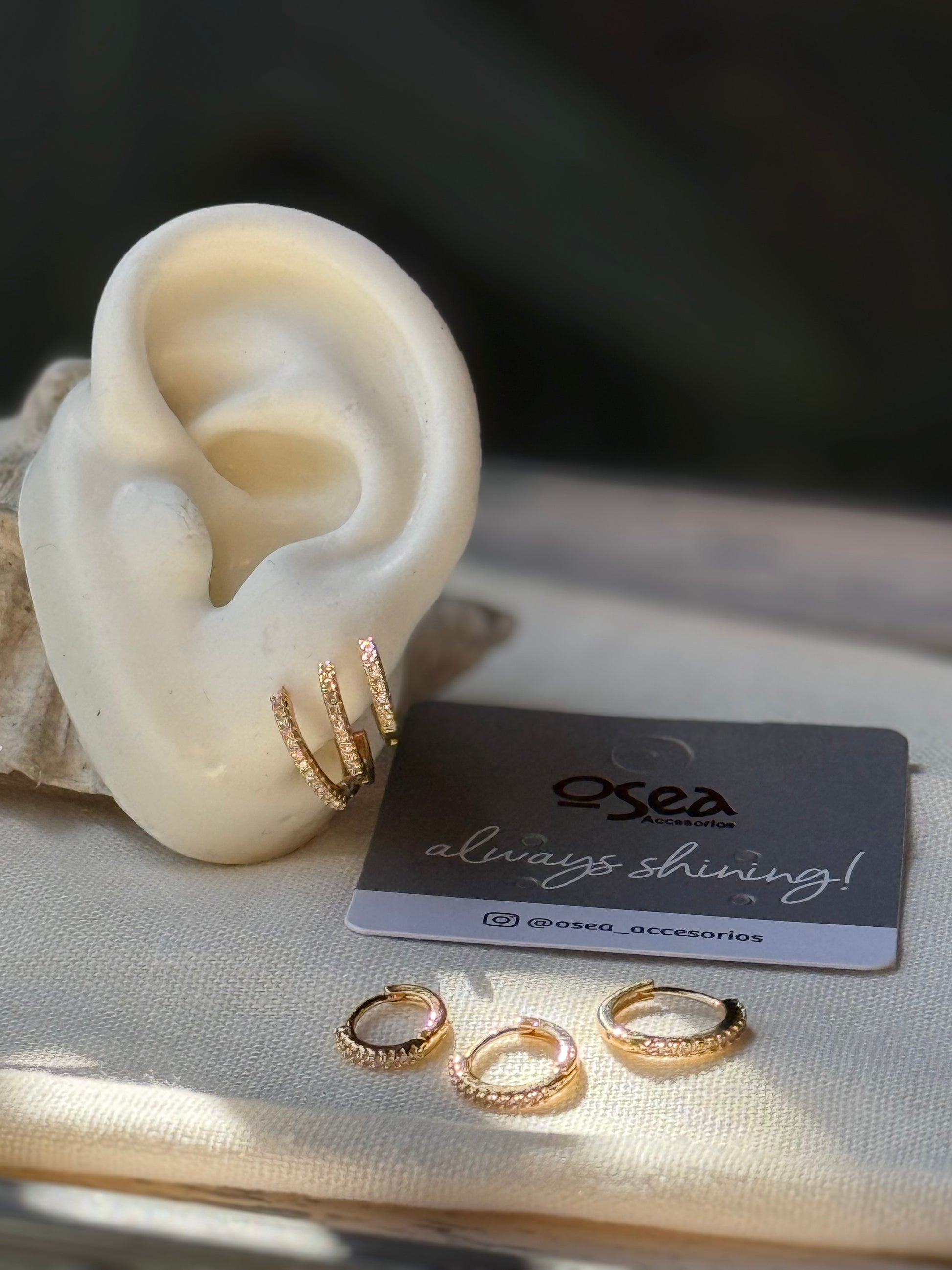 ¡Consigue un look elegante y divertido con nuestro set de rodinado de 3 candongas! Este set incluye 3 pares de aretes en candonga en tamaños variados, adornados con piedras brillantes en un tono dorado. ¡Añade un toque de glamour a cualquier outfit con este versátil set de aretes!
