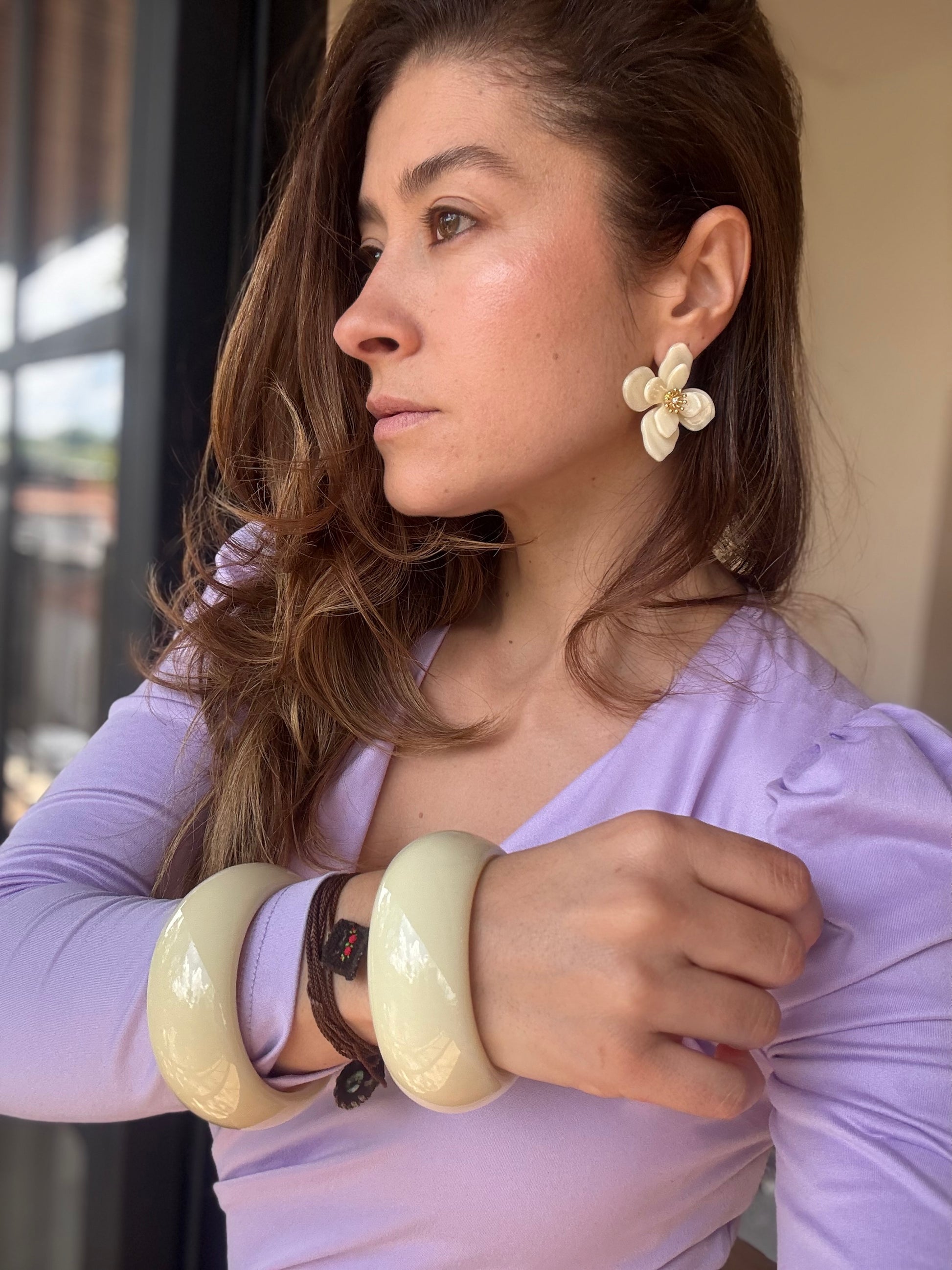 Hermosos aretes con estilo de moda en tendencia que agregan un toque único a cualquier atuendo. ¡Destaca entre la multitud y expresa tu estilo con estos hermosos aretes! ¡Haz una declaración de moda con estos aretes de flor!