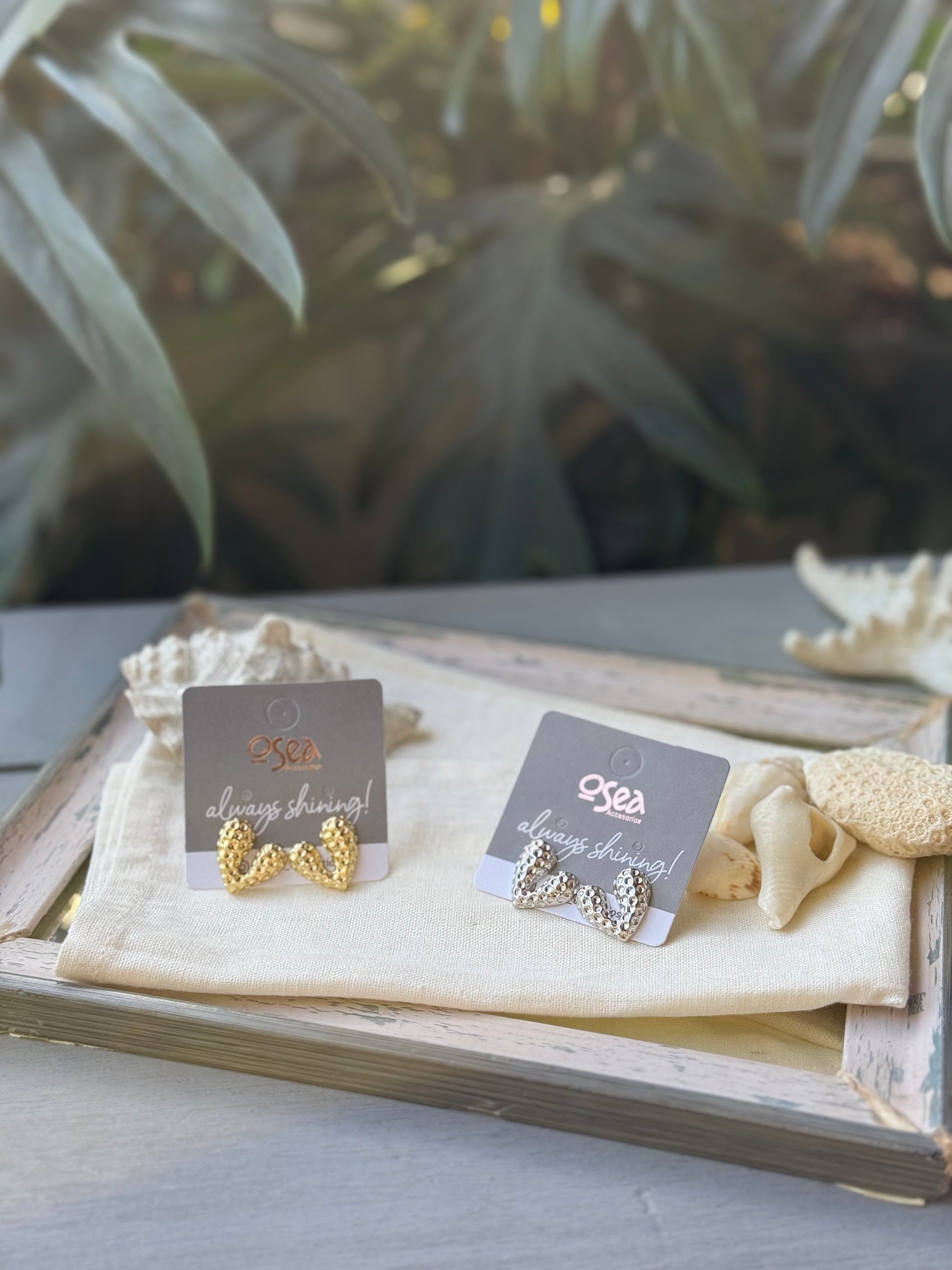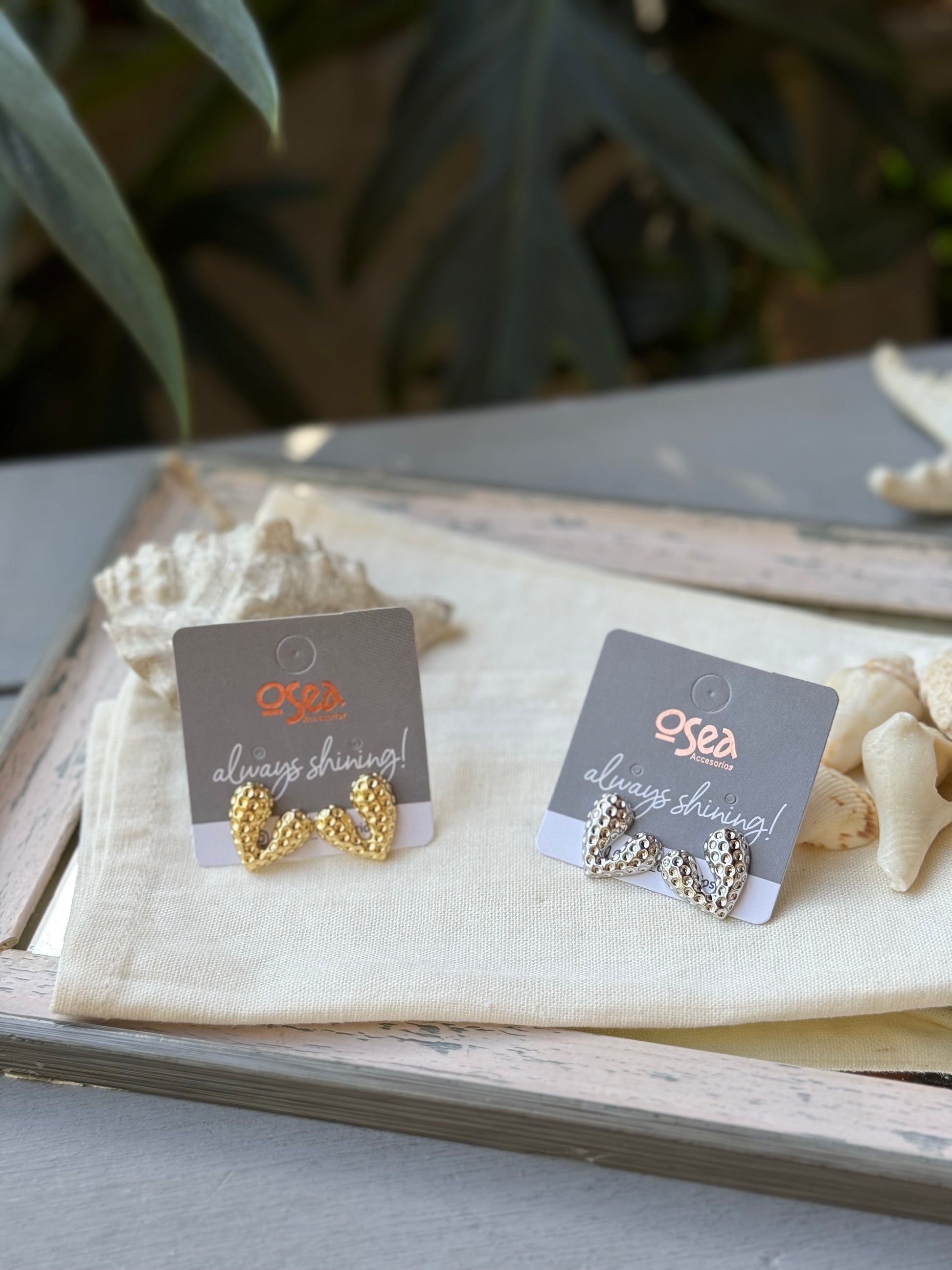 ¡Luce hermosa sin gastar mucho! Nuestro set de topos rodinados con textura de corazón te hará sentir radiante sin hacer una gran inversión. Resalta tu belleza natural con estos elegantes topos que están diseñados para hacerte sentir segura y hermosa. ¡Hazte con ellos ahora!