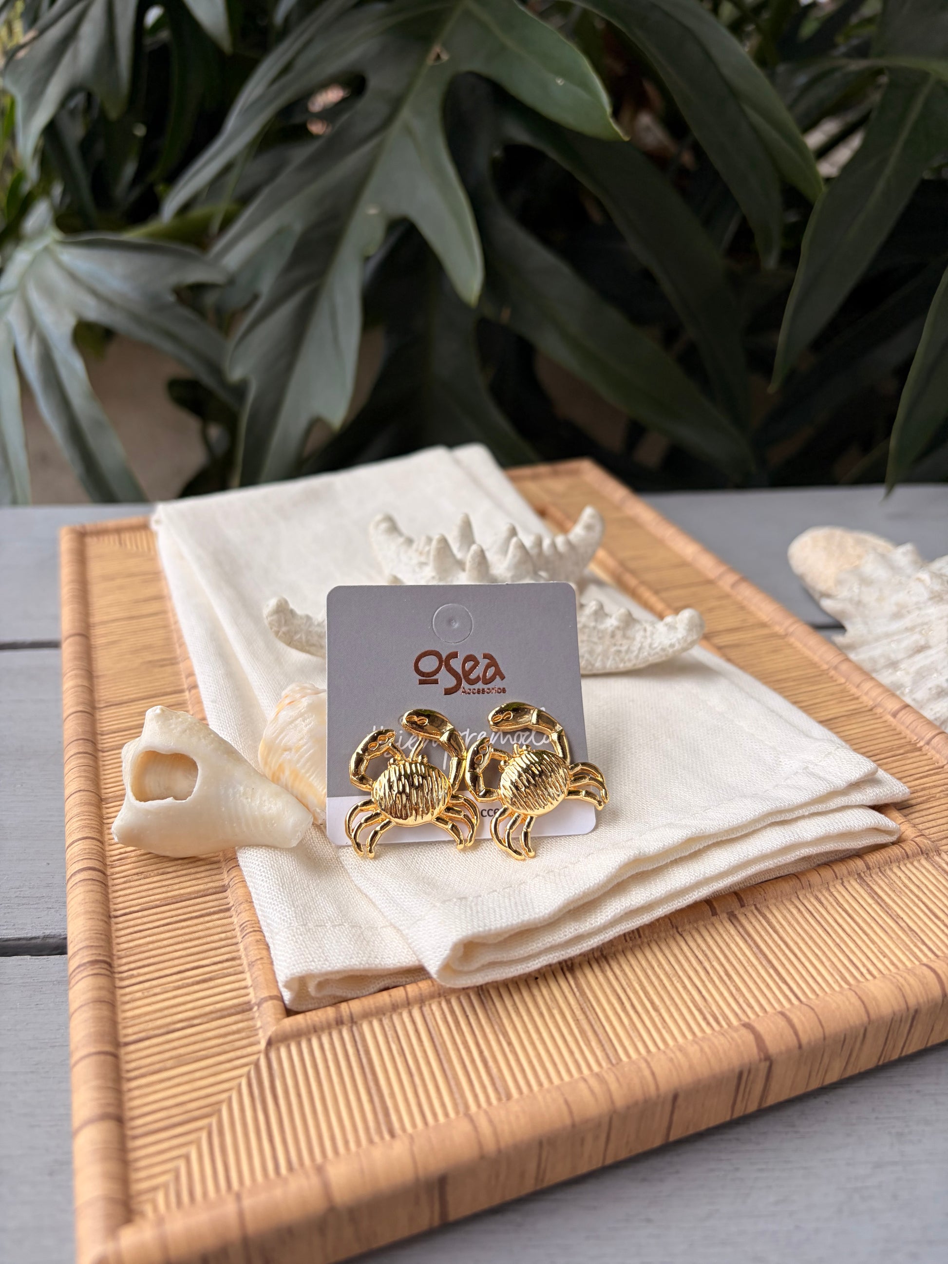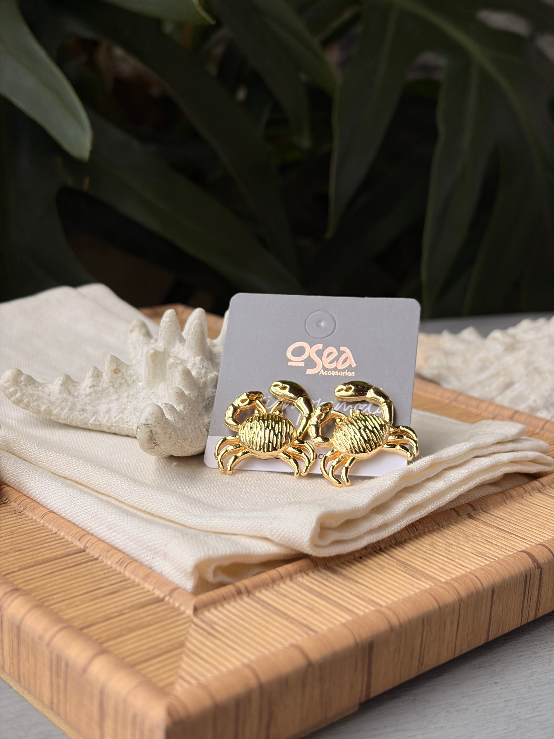 Embellece tus orejas con estos elegantes aretes tipo topos de playa con textura de cangrejo mediano y baño de oro de 24k. Añade un toque de lujo y sofisticación a tu atuendo de playa o de día a día. ¡Haz que tus orejas brillen con estos hermosos aretes!